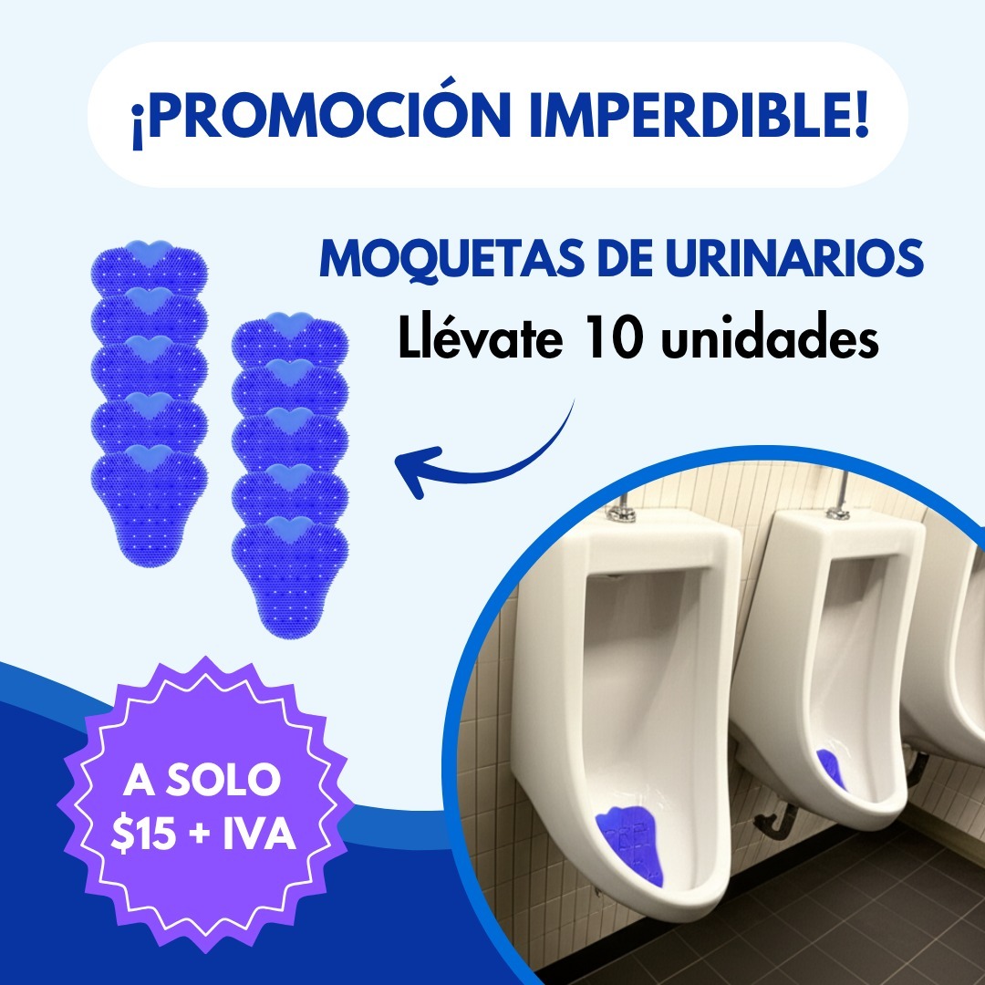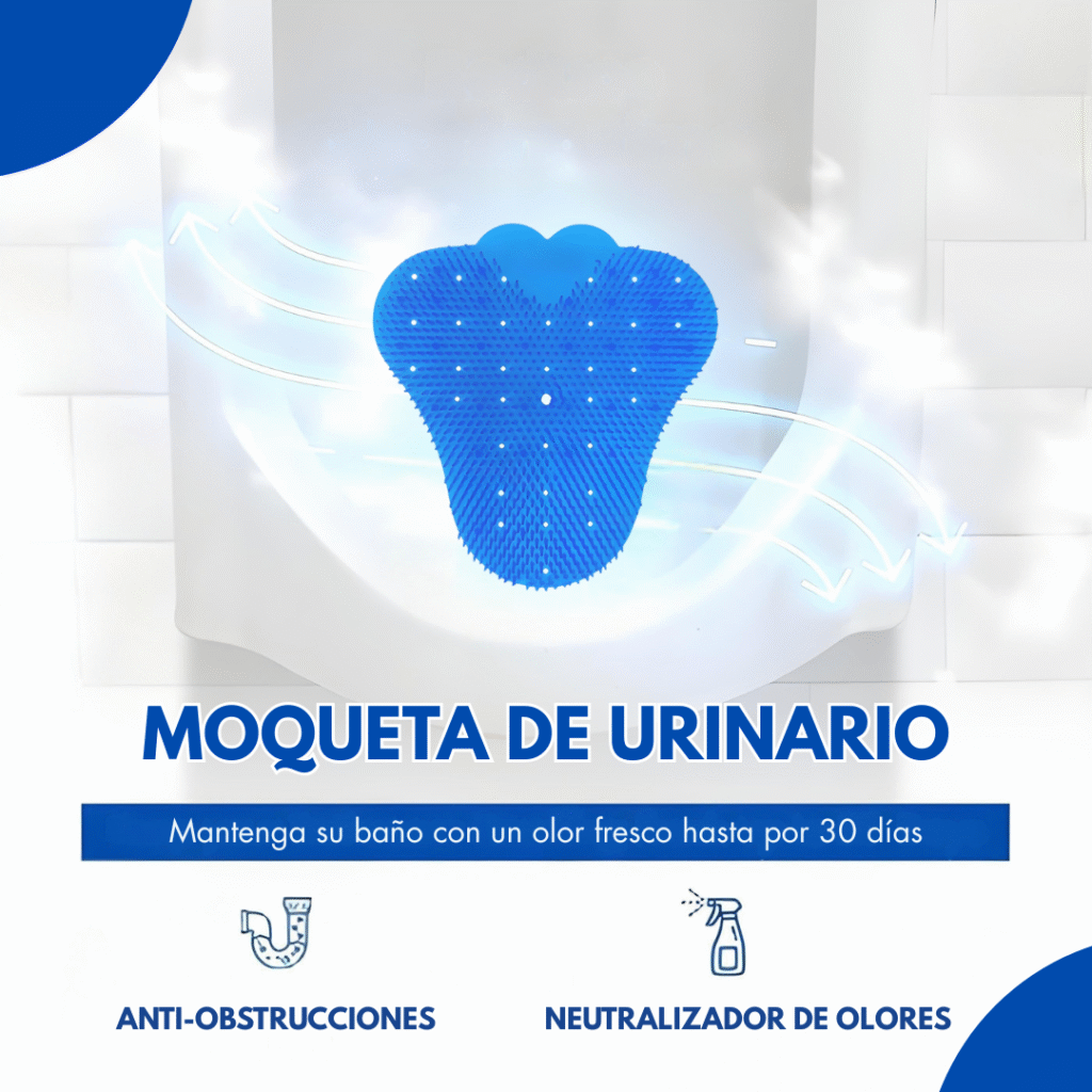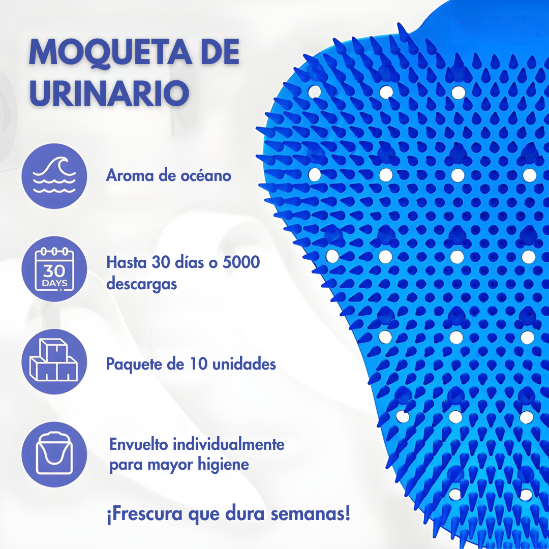 Nuestras moquetas para urinarios están diseñadas para garantizar la frescura y limpieza en baños públicos con alto tráfico. Cobertura total, protegiendo toda el área del urinario.